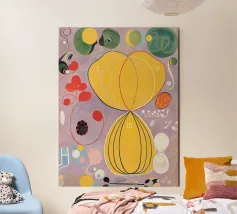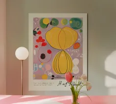 Tauchen Sie ein in Hilma af Klints vielschichtigen "Baum der Erkenntnis Nr. 5". Dieses fesselnde abstrakte Werk, eine meisterhafte Mischung aus Aquarell und Graphit, stellt spirituelle und evolutionäre Konzepte durch ineinander verwobene organische und geometrische Formen dar. Klints Vorreiterrolle in der abstrakten Kunst zeigt sich in der durchdachten Komposition, die Zusammenhänge und verborgene Wahrheiten hervorhebt. Unser hochwertiges Digitalposter mit einer Auflösung von 7000x5000 Pixeln und 300 dpi gibt die subtilen Texturen und tiefgründigen Details dieses einflussreichen Meisterwerks makellos wieder und macht es zu einer einzigartigen Ergänzung für jede Kunstsammlung.