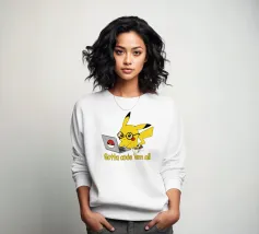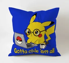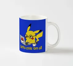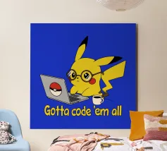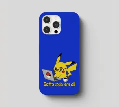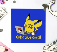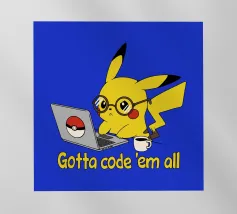 Ein liebenswert nerdiger Pikachu, der eine Brille trägt und sich auf seinen Laptop konzentriert, mit der verspielten Phrase "Gotta code 'em all". Dieses Kunstwerk verbindet das Pokémon-Universum mit der Welt der Programmierung und ist ein perfektes Wortspiel für Entwickler und Fans der Popkultur. Ideal für Programmierer, Gamer und Sammler, die gerne Humor, Nostalgie und Technologie in ihrem Stil kombinieren.