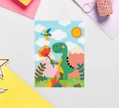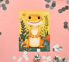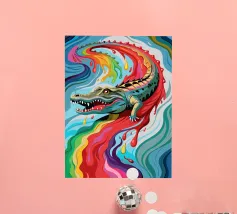 Dieser süße kleine Dinosaurier verbreitet Liebe, denn er umklammert freudig ein leuchtend rosa Herz, während er auf einem Bett aus bunten Wolken schwebt. Mit seinen großen, leuchtenden Augen und seinem verspielten Ausdruck bringt dieser Dino einen unwiderstehlichen Charme in jede Umgebung. Die leuchtenden Farben Orange, Grün und Rosa machen ihn zu einem optischen Leckerbissen für Dino-Liebhaber jeden Alters. Ob als niedliche Ergänzung zu Ihrer Einrichtung oder als lustiges Geschenk, dieser liebenswerte Dinosaurier ist bereit, Lächeln und Wärme zu verbreiten!