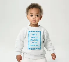 Unsere Baby Sweatshirts bestehen aus 85 % Bio-Baumwolle und 15 % recyceltem Polyester.