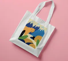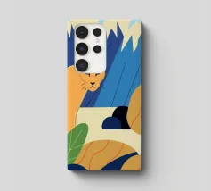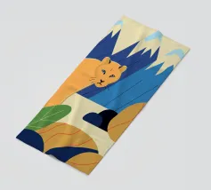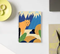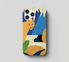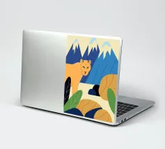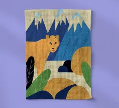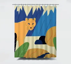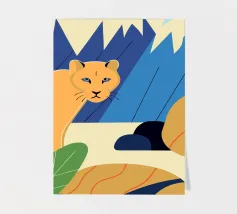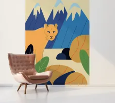 Genießen Sie eine lebendige Illustration eines Berglöwen in seinem natürlichen Lebensraum mit Bergen im Hintergrund.