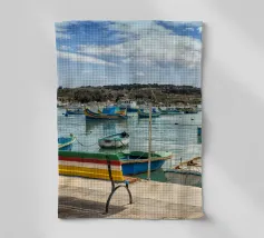 Holen Sie sich den pulsierenden Geist von Maltas berühmtestem Fischerdorf in Ihr Zuhause mit diesem atemberaubenden Poster von Marsaxlokk. Bekannt für seine farbenfrohen traditionellen Fischerboote, bekannt als Luzzu, und seinen ruhigen Hafen, fängt diese Szene die Essenz des mediterranen Lebens ein. Die ruhigen Gewässer und die charmante Dorfkulisse schaffen ein perfektes Gleichgewicht aus Frieden und lebendigen Farben. Ideal für Reiselustige, Kunstliebhaber und alle, die die Schönheit authentischer Küstenstädte zu schätzen wissen. Bringen Sie einen Hauch maltesischer Kultur in Ihren Raum mit diesem fesselnden Wandkunstwerk.