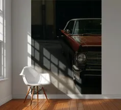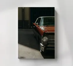 Die Vorderseite dieses klassischen roten Autos besticht durch seine atemberaubenden Details. Die ikonische leuchtend rote Farbe, kombiniert mit dem perfekten Design.