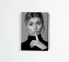 This black-and-white portrait has a playful and expressive quality, with a very clear, recognizable gesture.