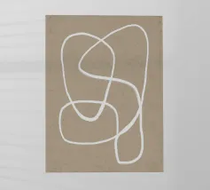 Diese moderne, abstrakte Illustration zeigt ein großen Knoten und Drehung in hellen Farben beige und weiß-creme, inspiriert von skandinavischem Boho-Stil. Die harmonischen Farbflächen und Linien erzeugen ein kindliches, verspieltes Muster, das die Schönheit der Natur feiert.