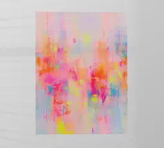 Dieses abstrakte Kunstwerk zeigt ineinanderfließende Farbflächen in Pastellrosa, Gelb, Blau und Grün und Pink. Die weichen Pinselstrukturen und die harmonische Popart Farbkomposition erzeugen eine Vibrierende, Lebendige Atmosphäre. Das Motiv wirkt modern, leicht und emotional und lädt zur freien Interpretation ein.