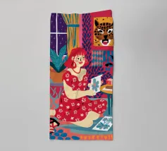 Ein abstraktes, ausdrucksstarkes Gemälde einer badenden oder sich räkelnden Figur. Die kühnen, fließenden Linien und leuchtenden Farben schaffen eine dynamische, energiegeladene und künstlerische Feier der menschlichen Form und der fröhlichen Bewegung.