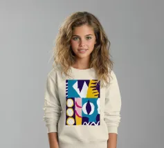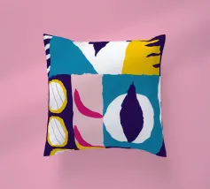 Ein kubistisch inspiriertes abstraktes Kunstwerk zerlegt ein menschliches Gesicht in geometrische Formen, Augen und Farbblöcke und schafft so ein zum Nachdenken anregendes und dynamisches Werk über Wahrnehmung und Identität.