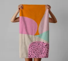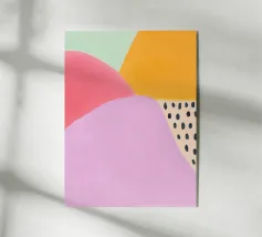 In einem bunten Farbenmix aus hellgrün, pink und lila strahlt das trendige Sommer-Poster mit kreativen Mustern und coolen Prints, die sofort gute Laune verbreiten. Die pinke-orange abstrakte Kunst verleiht dem Boho-Chic-Design eine fröhliche Note und lädt dazu ein, den Sommer in vollen Zügen zu genießen!