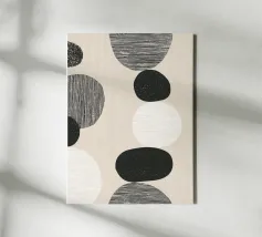Bringen Sie Wärme und Ausgeglichenheit in Ihren Raum mit diesem abstrakten geometrischen Kunstwerk, das ein Sonnen- und Bogenmotiv in erdigen Terrakottatönen zeigt. Die minimalistische Retro-Ästhetik verleiht jedem Interieur einen zeitlosen, beruhigenden Touch. Perfekt für moderne, böhmische oder skandinavisch inspirierte Einrichtungen.