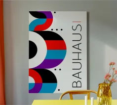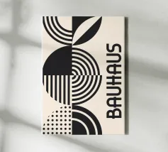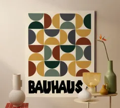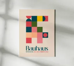 Tauchen Sie mit diesem lebhaften abstrakten Kunstdruck in die fesselnde und strukturierte Welt des Bauhauses ein. Das Design zeigt eine komplexe und doch harmonische Komposition ineinandergreifender geometrischer Formen - Kreise, Viertelkreise und Quadrate - in einer dynamischen Farbpalette aus lebhaftem Türkis, sanftem Lavendel und tiefem Pflaumenrot. Dieses Stück verkörpert perfekt den innovativen Geist und die funktionale Schönheit, die für die Bauhaus-Bewegung von zentraler Bedeutung waren, und schafft ein visuell anregendes Muster, das sowohl modern als auch zeitlos ist. Mit einer beeindruckenden Auflösung von 7000x5000 Pixeln und einer Auflösung von 300 dpi garantiert dieses hochwertige Digitalkunstwerk, dass jedes einzelne Element des Bildes perfekt zur Geltung kommt.