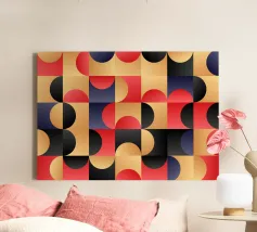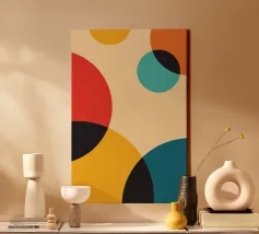 Dieses Kunstwerk zeigt eine Reihe von lebendigen, sich überschneidenden Kreisformen in verschiedenen Farben, die ein lebendiges und ansprechendes abstraktes Design schaffen, das das Auge fesselt.