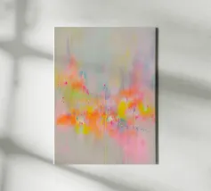 Dieses abstrakte Kunstwerk zeigt ineinanderfließende Farbflächen in Pastellrosa, Gelb, Blau und Grün und Pink. Die weichen Pinselstrukturen und die harmonische Popart Farbkomposition erzeugen eine Vibrierende, Lebendige Atmosphäre. Das Motiv wirkt modern, leicht und emotional und lädt zur freien Interpretation ein.