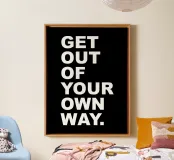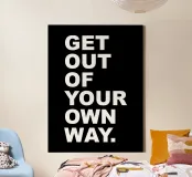Überwinden Sie Barrieren mit dem motivierenden Wandbild "Get Out of Your Own Way". Mit seiner kühnen Typografie und dem dynamischen Design ermutigt dieses Kunstwerk zu Selbstbewusstsein und Aktion und erinnert Sie daran, Hindernisse zu beseitigen und Ihr Potenzial zu entfalten. Das aus hochwertigen Materialien gefertigte Kunstwerk ist sowohl langlebig als auch stilvoll und eignet sich daher perfekt für Büros, Fitnessstudios oder persönliche Räume. Lassen Sie sich von diesem Kunstwerk zu Wachstum und Selbstmotivation inspirieren und geben Sie sich einen täglichen Anstoß, Grenzen zu überwinden und Ihre Fähigkeiten voll auszuschöpfen.