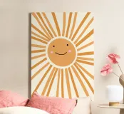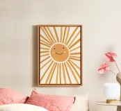 Glückliche Sonne Lächelndes Gesicht Retro Kunstdruck Leinwand mit Schattenfugenrahmen