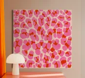 Modern gestaltetes Leopardenmuster in starken, trendigen Kontrastfarben. Rot, Pink und Abricot. Manche Produkte haben ein Herz mit diesem Muster.