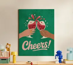 Ein fröhliches und skurriles Design, das die Freude am gemütlichen Beisammensein mit Freunden zelebriert, mit verspielten Elementen wie klirrenden Gläsern und bunten Akzenten. Mit einer lebhaften, fröhlichen Farbpalette strahlt dieses Kunstwerk eine lustige, unbeschwerte Energie aus - perfekt für alle, die gerne in Gesellschaft sind und die kleinen Momente des Lebens genießen. Ideal für Bars, Küchen, Lounges zu Hause oder als Geschenk für alle, die eine gute Zeit in toller Gesellschaft genießen!