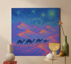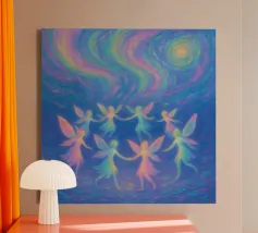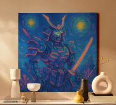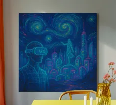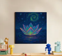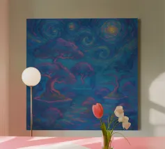 Dieses fesselnde Kunstwerk zeigt eine einsame Figur, die vor einem strahlenden, wirbelnden Strudel steht, in dem sich tiefe Blautöne mit lebhaftem goldenem Licht vermischen. Die strukturierten, malerischen Pinselstriche erzeugen ein faszinierendes Gefühl von Bewegung und Geheimnis und laden den Betrachter zu einer traumhaften Reise ein. Mit seinem atmosphärischen Glanz und seiner kontemplativen Stimmung spricht dieses Design Fans von surrealen Landschaften, symbolischer Kunst und emotionalen Geschichten an. Ein auffälliges Statement, das modernen Innenräumen, Kreativstudios oder Meditationsräumen Tiefe, Faszination und Farbe verleiht. Lassen Sie Ihre Wand eine Geschichte des Wunders erzählen.