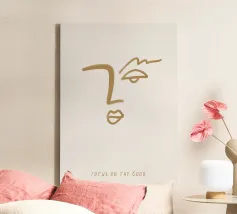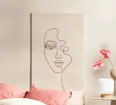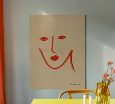 Einfache Strichzeichnung zeigt ein lächelndes Gesicht mit geröteten Wangen Leinwand