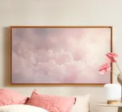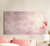 Eine verträumte Landschaft aus flauschigen Pastellwolken füllt die Leinwand, die von sanftem Licht erhellt wird. Dieses abstrakte Design vermittelt ein Gefühl von Ruhe und Gelassenheit und eignet sich perfekt für verschiedene Anwendungen.