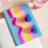 Abstraktes Gemälde mit wellenförmigen Streifen in Pink, Gelb und Blau auf flachem Hintergrund. Inspiriert von Hockney, realistisch gerendert mit Pastellfarben und scharfem Fokus. Modernes Kunstmotiv für stilvolle Raumgestaltung.