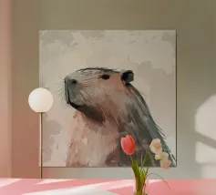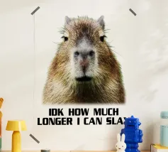 Eine niedliche Wasserschwein-Illustration, umgeben von einem motivierenden Text. Die Worte ermutigen zur Individualität mit einer humorvollen Wendung, die den Charme von Wasserschweinen hervorhebt.
