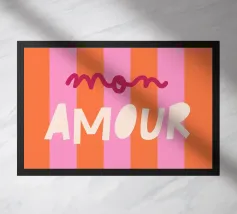 Discover the cheerful and energetic design "MOIN - North German joie de vivre". This eye-catching poster combines bold vertical stripes in orange and pink with the charming lettering "MOIN" in curved yellow handwriting. The stripes have a slightly irregular, painted texture that gives the design a playful, artistic touch. The word "MOIN" - a well-known greeting from northern Germany - takes centre stage and gives the design a friendly and inviting atmosphere.