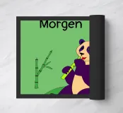 This artwork features a panda enjoying its food, bamboo, in a creative and modern typographic style.