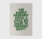 Mit seinen kräftigen grünen, handgezeichneten Buchstaben auf einem weichen, beigen Hintergrund strahlt dieses Stück Wärme und Selbstmitgefühl aus. Der auffällige Kontrast schafft einen Blickfang, der zu jedem Einrichtungsstil passt. Perfekt für alle, die ihre Umgebung mit Positivität und Selbstliebe erfüllen wollen. Dieser Druck ist ideal für Schlafzimmer, Büros oder Wohnräume und bringt eine sanfte Erinnerung an Ihre Wände. Der handgefertigte Schriftzug verleiht dem Kunstwerk eine persönliche, einladende Note. Verwandeln Sie Ihr Zuhause mit diesem aufmunternden Werk, das zu freundlichen Selbstgesprächen und emotionalem Wohlbefinden anregt.