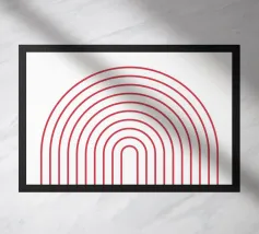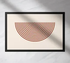 Dieser abstrakte Liniendruck mit eleganten Bogen- und Kreismotiven in einem warmen, satten Terrakotta-Farbton wertet Ihren Raum auf. Dieses minimalistische Design enthält subtile, aber faszinierende Muster innerhalb der geometrischen Formen: ein Abschnitt zeigt zarte Polka-Dots, während ein anderer organische, fließende Konturlinien zeigt, die Tiefe und visuelles Interesse hinzufügen. Dieses Stück verkörpert eine raffinierte Mischung aus moderner und erdiger Ästhetik. Mit einer beeindruckenden Auflösung von 7000x5000 Pixeln und einer Auflösung von 300 dpi garantiert dieses hochwertige Digitalkunstwerk makellose Details und lebendige Farben und ist somit ein ideales