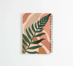 Eine einfache, elegante Illustration eines einzelnen großen Palmenblattes vor einem weichen, strukturierten, zweifarbigen Hintergrund. Der Stil ist minimalistisch und beruhigend.