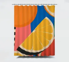 A graphic, pop art style pattern of orange slices against a dark blue background. The composition is modern, vibrant, and a fresh, zesty, and stylish design.