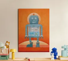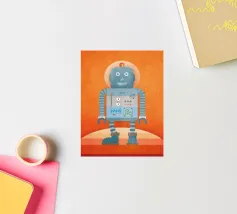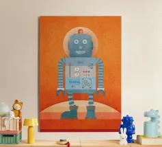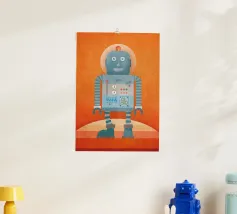 Piep-Piep, Roboter Robi sagt Hallo! Welches Mädchen und welcher Junge hätte Robi nicht gerne zum Freund? Als Art-Print-Poster ist Robi ein echter Hingucker – nicht nur im Kinderzimmer. Leuchtende Farben und Retro-Struktur erzeugen einen ganz besonderen Charme.