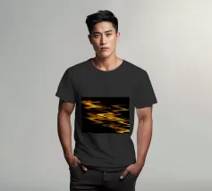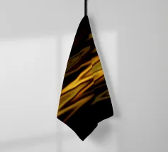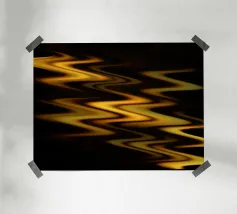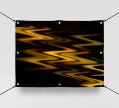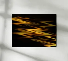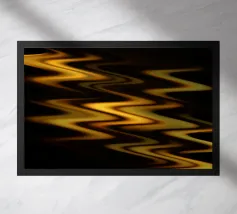 Das Bild zeigt dynamische Wellen und Muster in den Farben Orange und Gelb.
