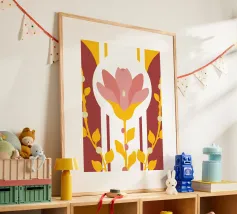Eine Illustration mit einem Blattmuster in einem einfachen Stil, mit rosa, weißen und braunen Farben. Diese Illustration bietet einen frischen und modernen Look.