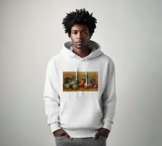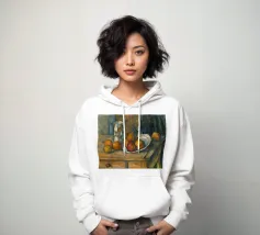 Ein bezauberndes Stillleben des impressionistischen Meisters Claude Monet, das die stille Eleganz von Alltagsgegenständen zeigt Es zeigt ein rustikales Arrangement von Äpfeln und Trauben auf einem weiß gedeckten Tisch, der in weiches, natürliches Licht getaucht ist Fängt die flüchtige Schönheit der reifen Früchte mit lockeren Pinselstrichen und warmen, herbstlichen Farbtönen ein Anders als Monets berühmte Landschaften wurde dieses intime Werk bei schlechtem Wetter in einem Innenraum gemalt. Ein zeitloses und beruhigendes Kunstwerk, das sich perfekt für Küchen, Esszimmer oder jedes gemütliche Interieur eignet Ein ideales Geschenk für Kunstliebhaber, Köche und alle, die die Ästhetik des Rustikalen und des Stilllebens schätzen