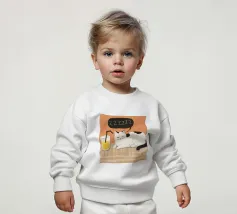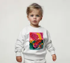 Unsere Baby Sweatshirts bestehen aus 85 % Bio-Baumwolle und 15 % recyceltem Polyester.