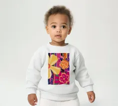 Unsere Baby Sweatshirts bestehen aus 85 % Bio-Baumwolle und 15 % recyceltem Polyester.