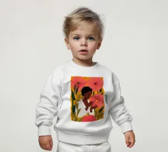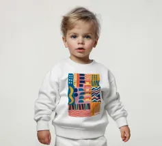 Unsere Baby Sweatshirts bestehen aus 85 % Bio-Baumwolle und 15 % recyceltem Polyester.