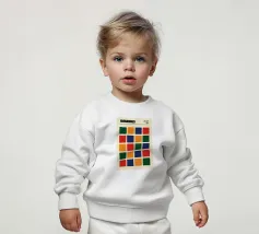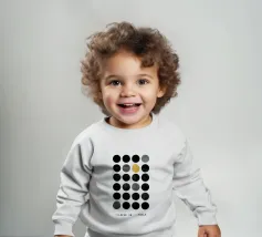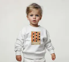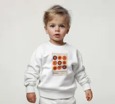 Unsere Baby Sweatshirts bestehen aus 85 % Bio-Baumwolle und 15 % recyceltem Polyester.