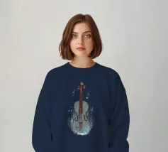 Entdecken Sie die Schönheit der Streichinstrumente mit dieser detaillierten Lehrtafel für Geige, Cello, Bratsche, Gitarre, Harfe und Ukulele.