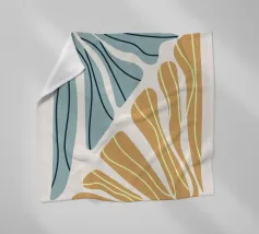 Abstrakte Formen mit kühnen, fließenden roten und blauen Formen schaffen eine lebendige, dynamische Komposition. Die zusätzlichen gelben Linien bringen Kontrast und Bewegung in das Design.