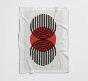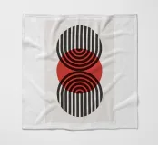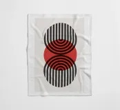 A bold Bauhaus-inspired abstract design featuring layered red circles and rhythmic black vertical lines. A striking modern statement piece perfect for contemporary interiors.