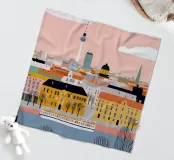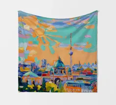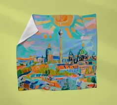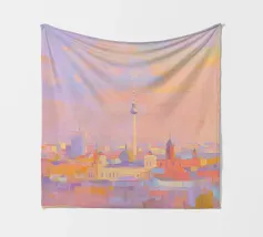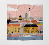 Eine moderne, von Berlin inspirierte Illustration zum Wohlfühlen, gerendert in sanften Pastellfarben und klaren grafischen Formen. Verspielt, aufmunternd und schick, fängt es den kreativen Geist der Stadt auf frische, zeitgenössische Weise ein.