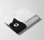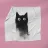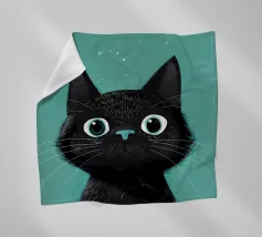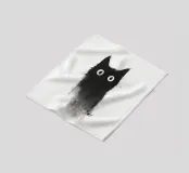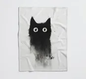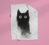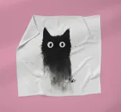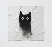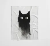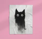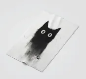 Eine skurrile Illustration einer schwarzen Katze mit großen, neugierigen Augen, die nahtlos in einen strukturierten, abstrakten Aquarelleffekt übergeht. Das Design erzeugt mit seinem minimalistischen und doch ausdrucksstarken Stil eine verspielte und künstlerische Stimmung.