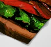 Noah Verrier, einer der 40 besten amerikanischen Maler von New American Paintings, kredenzt köstliche Stillleben von klassischem, amerikanischem Comfort und Fast Food. Grilled Cheese Sandwiches, PB&Js oder Big Macs werden zum Leben erweckt und lassen einem das Wasser im Mund zusammen laufen. Die meisterhafte Technik des Künstlers, Kontraste aufzubauen, Licht einzufangen oder die Oberfläche eines klebrigen Käsetropfens zum Glänzen zu bringen, ist geradezu meisterhaft. Noah ist ein ehemaliger Kunstprofessur und lebt mit seiner Familie in Tallahassee. Seine Werke wurden bereits auf der ganzen Welt ausgestellt, darunter in Japan, Australien, Deutschland, Indien, Kanada, England und Frankreich.