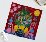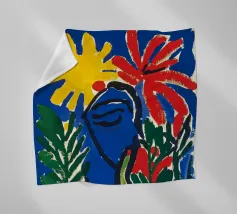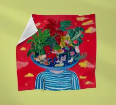 Ähnlich wie bei Lunar131 zeigt dieses Gemälde einen Kopf, der mit leuchtenden Blumen und Pflanzen gefüllt ist. Der Hintergrund ist rot mit Sternen und einer gelben Sonne.
