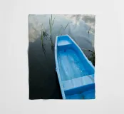 Diese Kunstfotografie "Boot" fängt eine zeitlose Szene mit einer minimalistischen Ästhetik ein.
