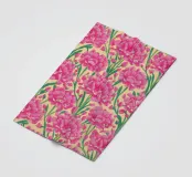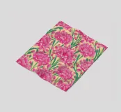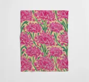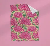 Ein sich wiederholendes Muster aus leuchtend rosafarbenen Nelken mit geschichteten Blütenblättern vermittelt ein Gefühl von Nostalgie und dekorativem Charme.