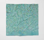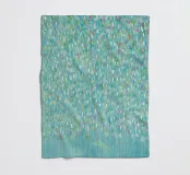 Dieses Bild zeigt ein abstraktes Gemälde, das sich durch eine Vielzahl kurzer, vertikaler Pinselstriche in einer Vielzahl von Farben vor einem weichen blauen Hintergrund auszeichnet. Die Pinselstriche erzeugen eine strukturierte und rhythmische Oberfläche, die den Eindruck einer sanften Bewegung oder vielleicht eines fallenden Regens vermittelt. Durch die Überlagerung der Farben entsteht ein Gefühl von Tiefe, wobei wärmere Töne durch kühlere hindurchscheinen. Die Gesamtwirkung ist beruhigend und erinnert an die Elemente der Natur und ruft ähnliche Gefühle hervor wie Lichtreflexe auf dem Wasser oder das Rascheln von Blättern in der Brise.